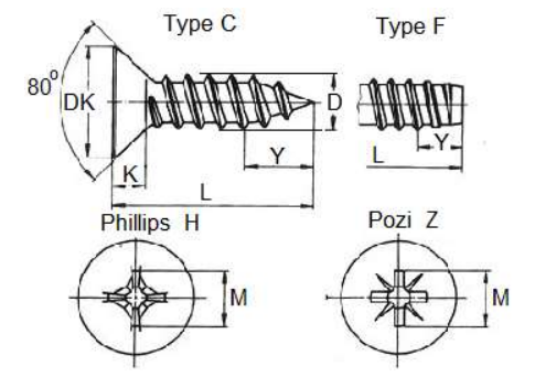 Cross Recessed Flat Countersunk Head Self-Tapping Sheet Metal Screws